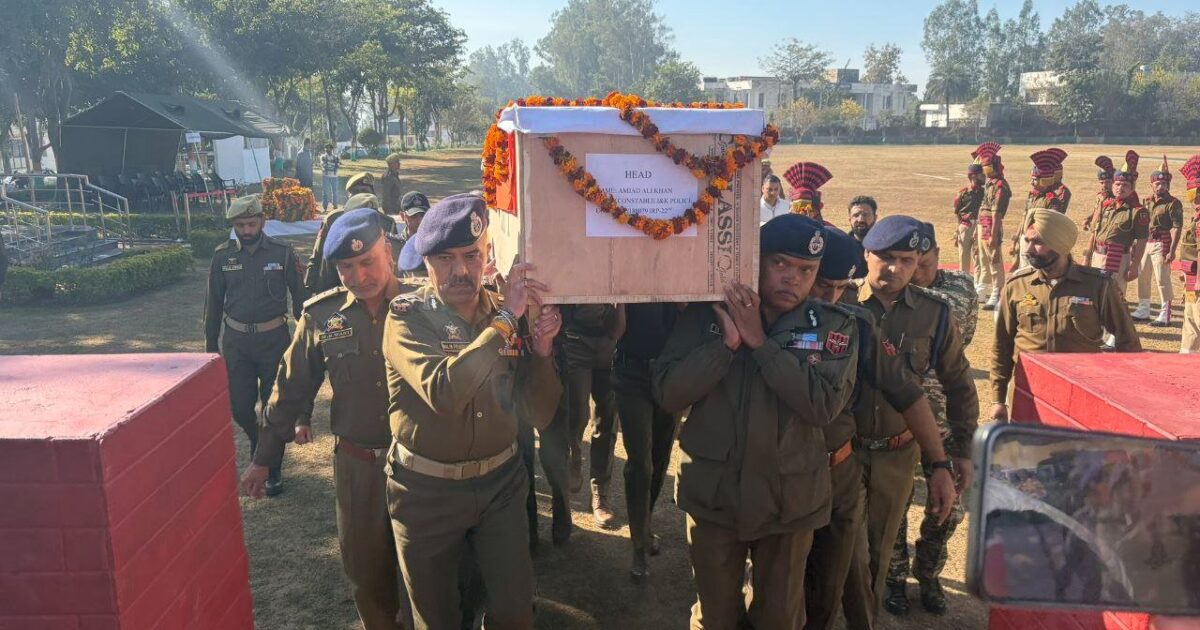 جموں،16دسمبر(یو این آئی) جموں و کشمیر کے ادھم پور ضلع کے مجالتا علاقے میں دہشت گردوں کے ساتھ پیش آئے تصادم کے دوران شہید ہونے والے اسپیشل آپریشن گروپ (ایس او جی) کے بہادر اہلکار امجد پٹھان کو منگل کے روز پورے سرکاری اعزاز کے ساتھ خراجِ عقیدت پیش کیا گیا۔ اس موقع پر ایک تعزیتی گلباری تقریب منعقد ہوئی، جس میں جموں و کشمیر پولیس کے سربراہ نالین پربھات، انسپکٹر جنرل پولیس جموں بھیم سین توتی، ضلعی انتظامیہ کے سینئر افسران اور پولیس و سکیورٹی فورسز کے اعلیٰ عہدیداروں نے شرکت کی۔