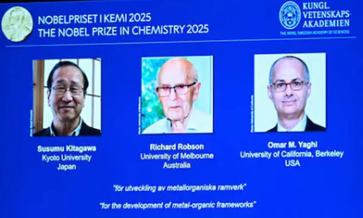 خبر رساں ادارے ’رائٹرز‘ کے مطابق جاپانی سائنس دان سوسومو کٹاگاوا، آسٹریلوی سائنس دان رچرڈ روبسن اور سعودیہ نژاد امریکی سائنس عمر یاغی کو کیمسٹری کا انعام دینے کا اعلان کردیا گیا۔