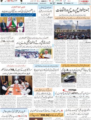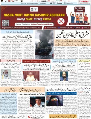 ایران امریکہ جنگ بندی پر جموں کشمیر لیڈران کا رد عمل؛ ‘مذاکرات ہی واحد حل’ جموں و کشمیر میں دہشت گردوں کے سہولت کاروں پر گھیرا تنگ، مزید دو سرکاری ملازمین ملازمت سے برطرف شالگڑی، بنی ہال لینڈ سلائیڈ کے بعد این ایچ-44 بند، ہزاروں مسافر پھنس گئے امریکہ اور ایران دو ہفتے کی جنگ بندی پر رضامند ایران میں موجود بھارتی شہریوں کے لیے اہم ایڈوائزری، جنگی صورتحال کے پیش نظر احتیاط کی ہدایت