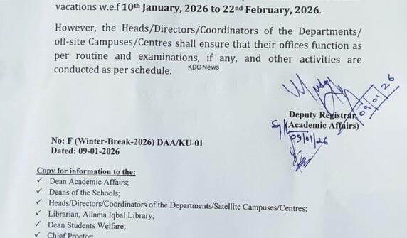 کشمیر یونیورسٹی میں سرمائی تعطیلات کا اعلان