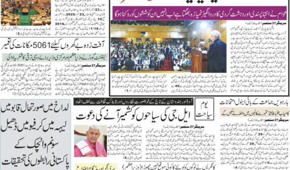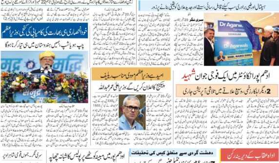 پونچھ میں منشیات فروش گرفتار، ہیروئن جیسا مواد بر آمد: پولیس test دہلی دھماکے کے بعد ہر کشمیری کو مشکوک سمجھا جا رہا ہے:وزیر اعلیٰ عمر عبداللہ دہلی دھماکے کے بعد حفاظتی اقدامات سخت، شوپیاں میں ڈاکٹروں کے لاکرز کی تلاشیاں غلام نبی آزاد کی پارٹی کو بڑا جھٹکا؛ دو سابق وزراء سمیت سینئر لیڈر دوبارہ کانگریس میں شامل